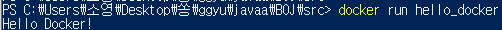 - docker run hello_docker 명령어로 이미지를 실행시키면 자바 코드가 실행된다.