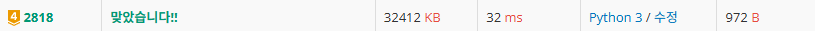 파이썬 풀이 중에 가장 빠른 시간으로 해결했다. 뿌-듯